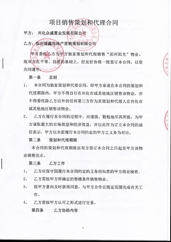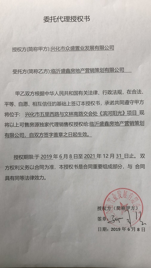 代理销售委托书