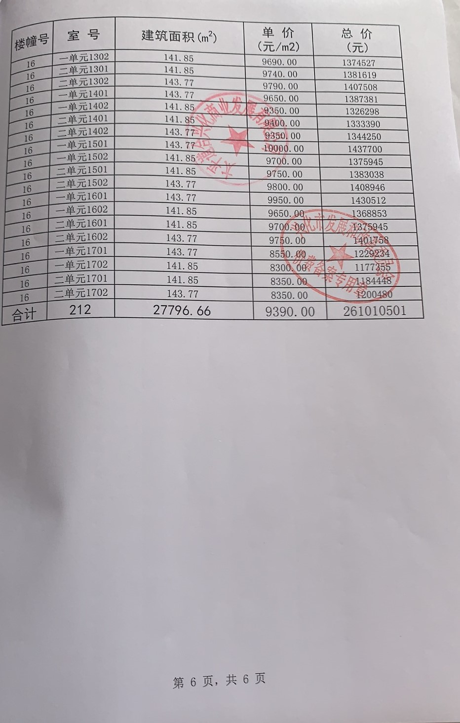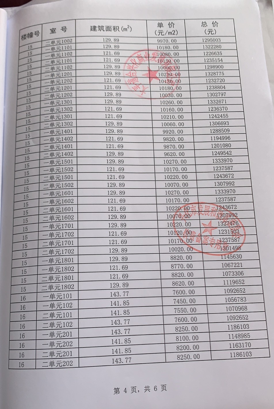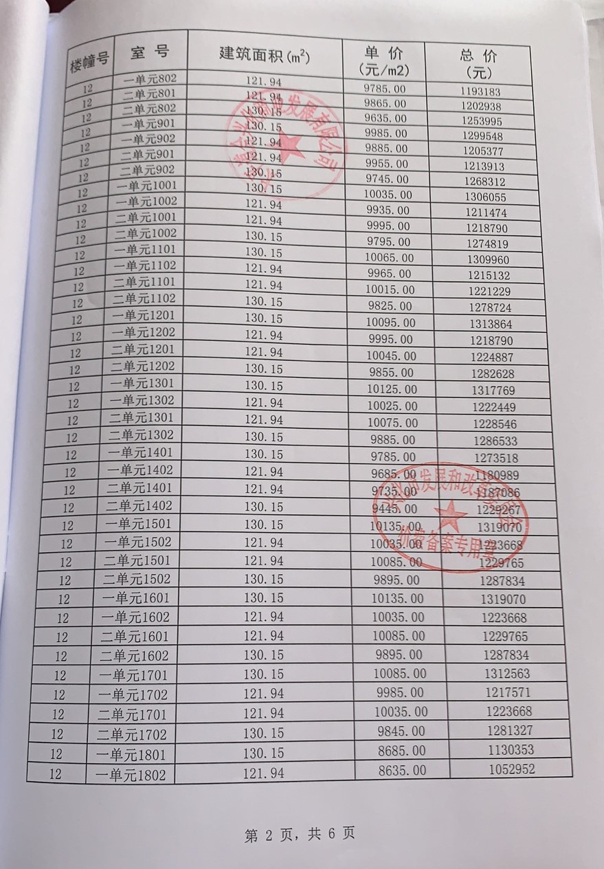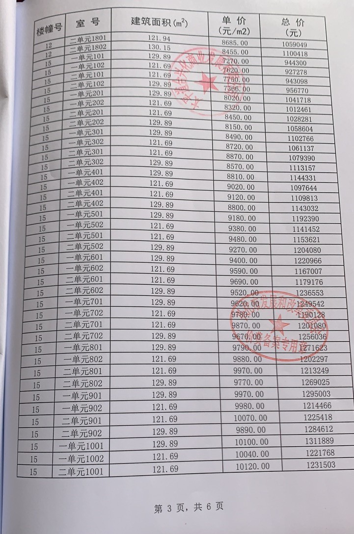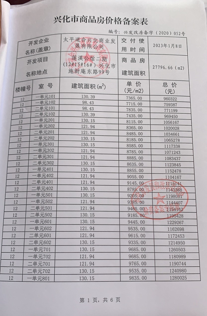 价格备案表