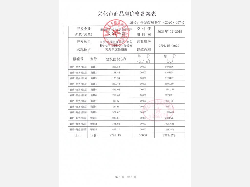 价格备案表